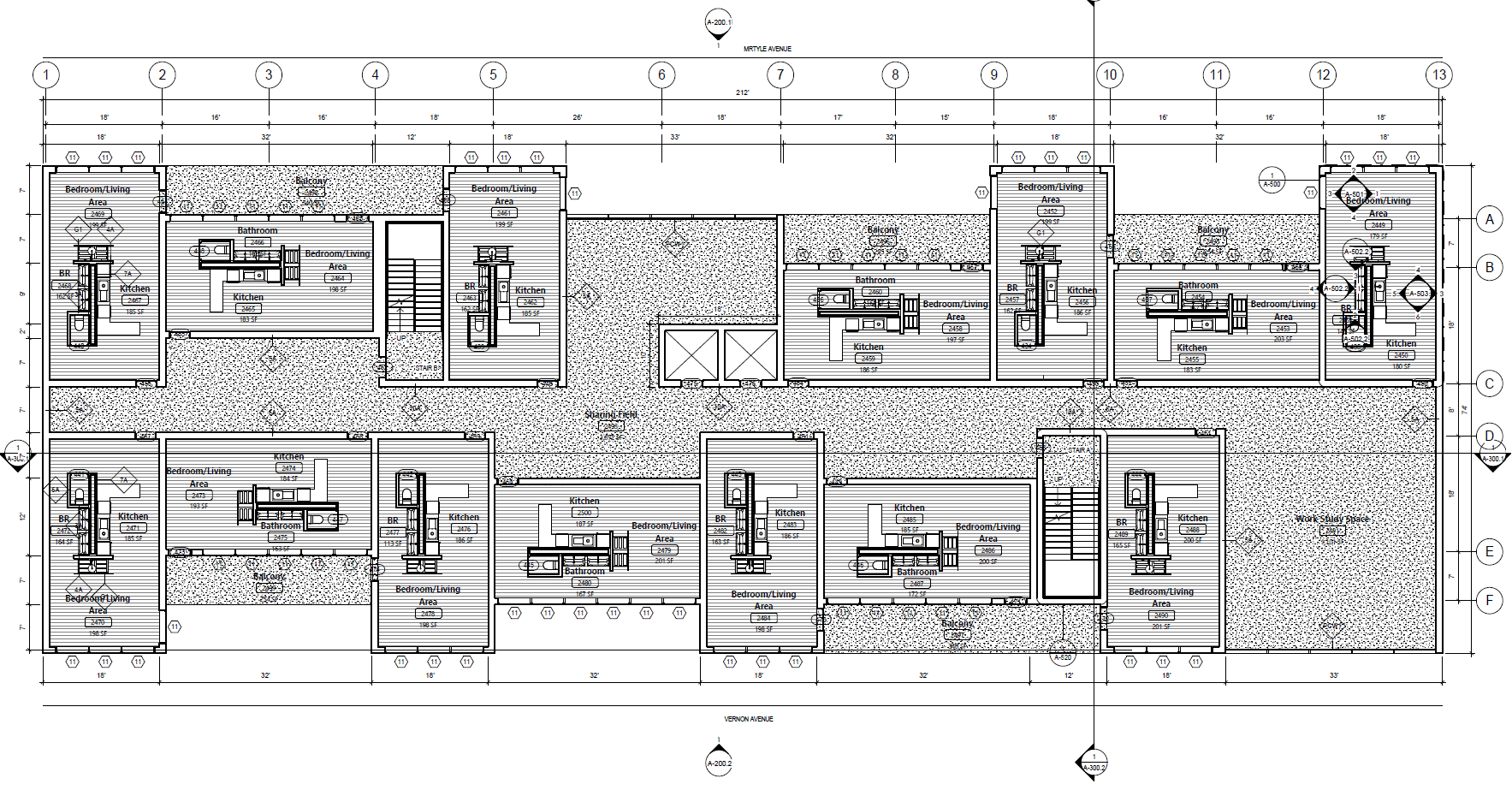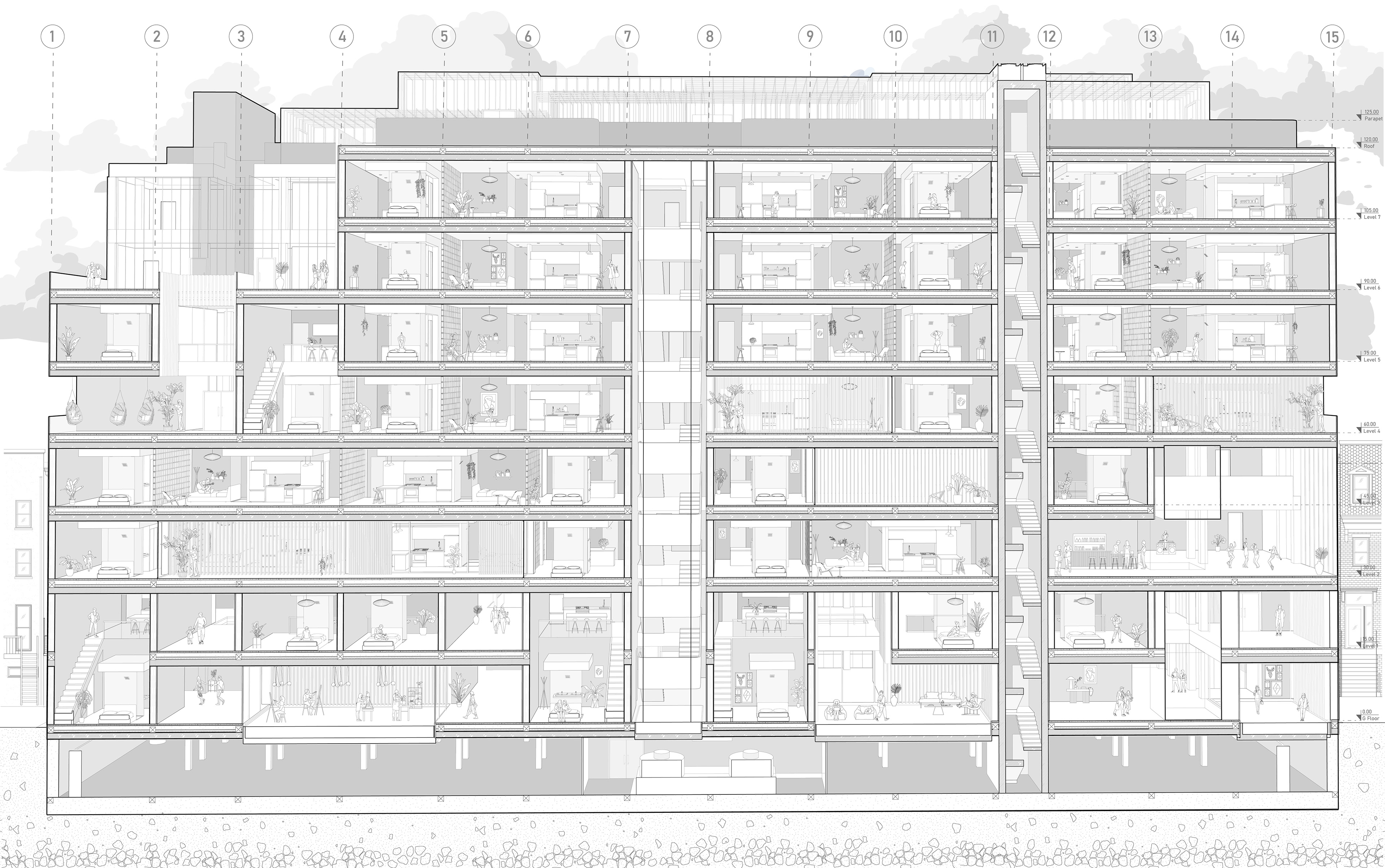 is a residential housing project that combines living and work environments. Located in Bedford-Stuyvesant, New York, the project is embedded within a gentrification zone of Brooklyn. The complex focuses on providing workspace for entrepreneurs and artisans. It is composed of vertical and horizontal L-shape units that stack and orient in alternate directions.